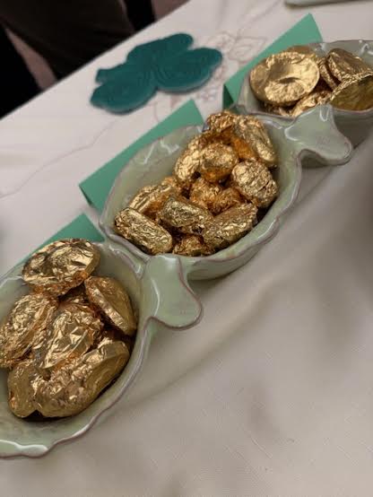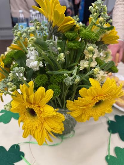 Thank you to our hosts for bringing the luck of the Irish to our table this month! With a bright yellow centerpiece of gerbera daisies, and many delicious snacks, including little pots of gold from Harbor Sweets, we chatted with old friends and new before our program began. I think we all felt spring is just around the corner!