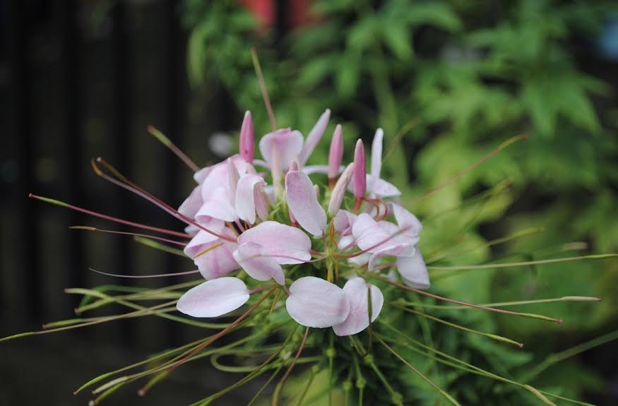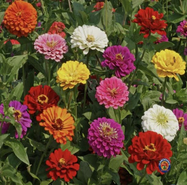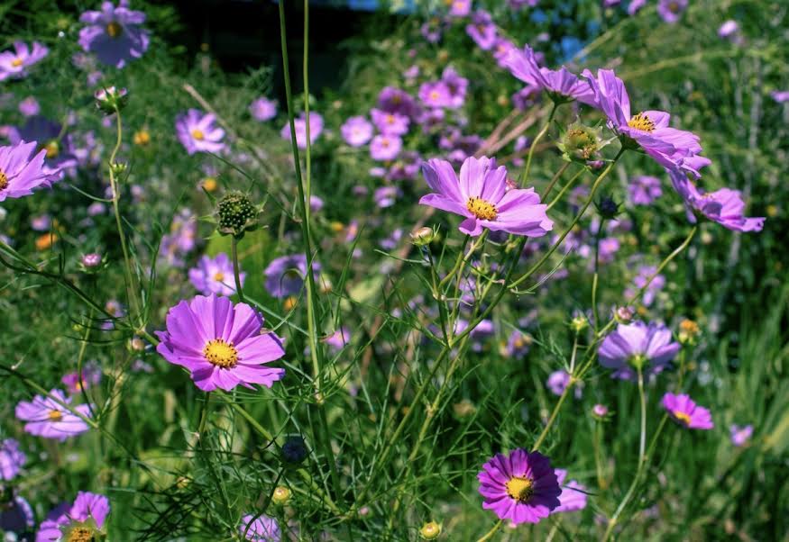 –High: cleome, cosmos, verbena, giant zinnias, and grasses.