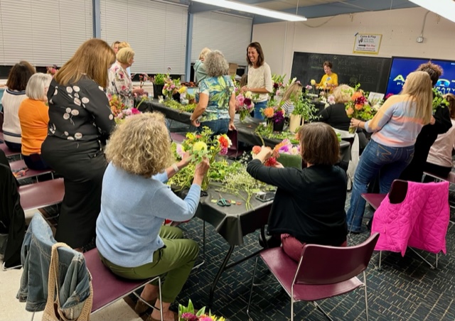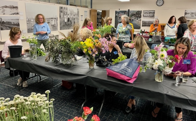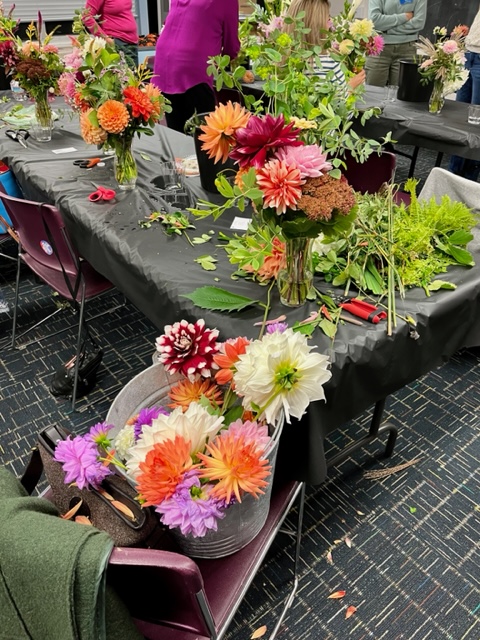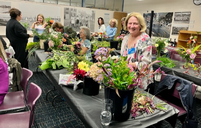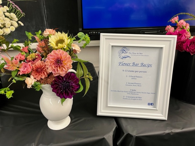 Driftwood Garden Club of Marblehead Members gathered recently for a delightful evening of Designing with Dahlias presented by Jocelyn Cook ‘s The Fleur de Mer flower bar. Jocelyn impressed us with her enthusiasm and technique of propagating, growing, and harvesting her garden-fresh flowers.